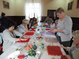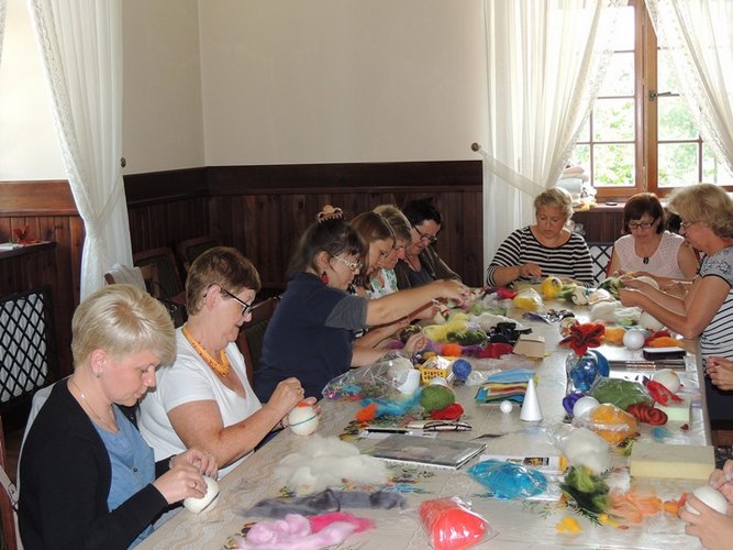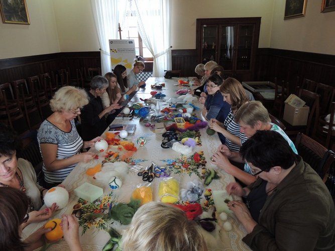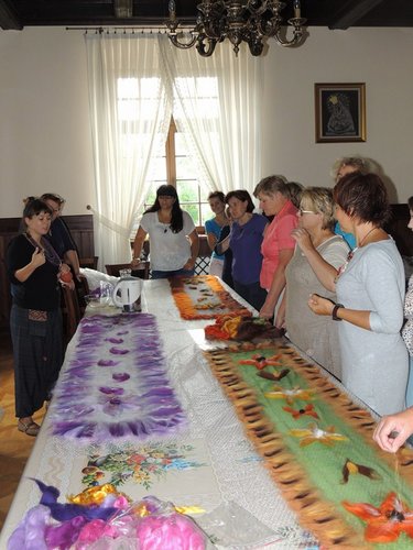 Podczas warsztatów uczestnicy zostali zapoznani z techniką filcowania na sucho i na mokro. Biorące udział w projekcie członkinie stowarzyszeń i pracownice ośrodków kultury zdobyły wiedzę na temat wykonania filcowej biżuterii i ozdób świątecznych oraz nauczyły się jak z wełny czesankowej zrobić kwiat, który może być wykorzystywany jako element dekoracyjny kobiecego stroju. Najbardziej pracochłonną częścią warsztatów poświęconych technice filcowania było wykonanie eleganckiego szalu na jedwabiu.