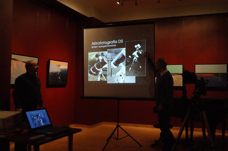 Zaproszeni goście opowiedzieli o swojej pasji czyli astrofotografii. Wszystkim zgromadzonym przy pomocy prezentacji multimedialnej wyjaśnili na czym polega taki rodzaj fotografii. Astrofotografia to pojęcie bardzo szerokie, dziedzina fotografii, która zajmuje się zdjęciami sfery niebieskiej oraz wszystkich występujących na niej obiektów, takich jak np. planety, galaktyki czy mgławice. Astrofotografię wykorzystuje się często, by ujrzeć obiekty zbyt słabe do oglądania gołym okiem bądź za pomocą niewielkich teleskopów.