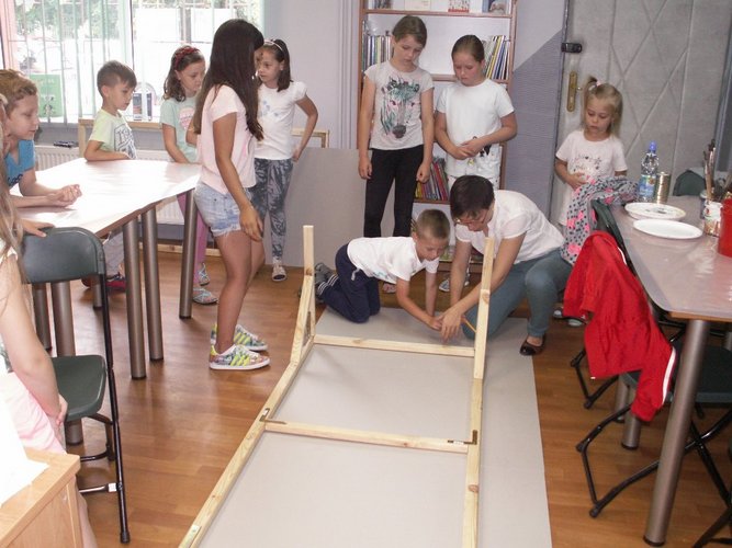 11 i 13 lipca na warsztatach plastycznych w Oddziale dla Dzieci i Młodzieży MiPBP w Łęczycy dzieci wykonały bajkowe monidła, które stały się tłem do wspólnych zdjęć.