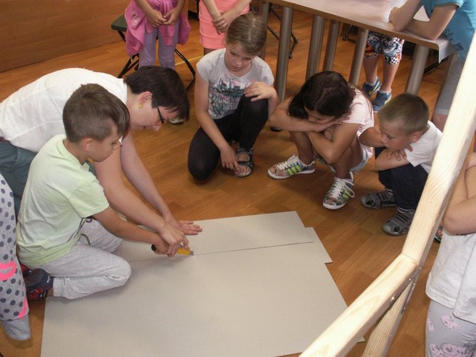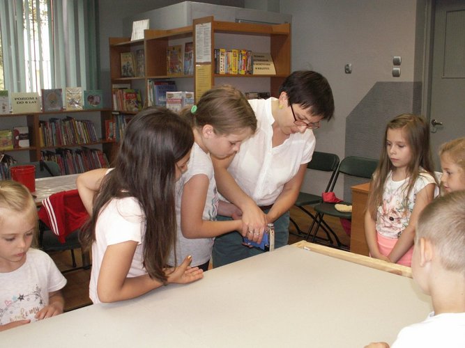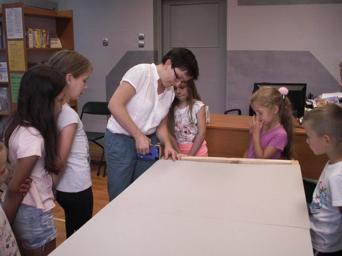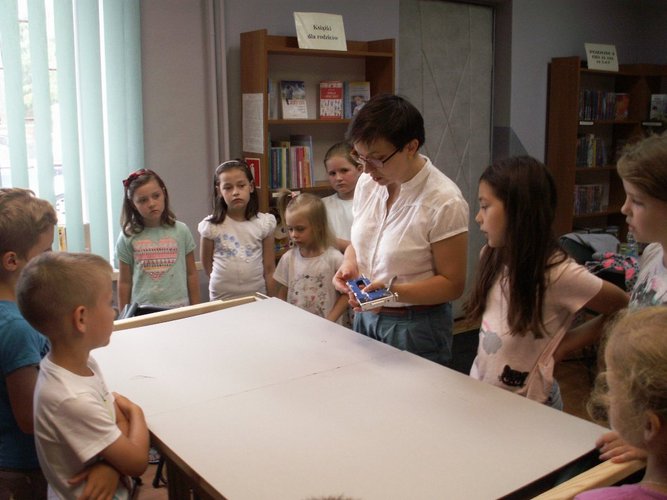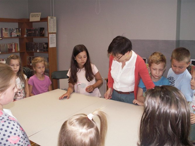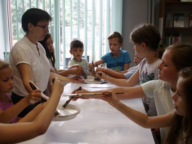 11 i 13 lipca 2017 r. w Oddziale dla Dzieci i Młodzieży MiPBP w Łęczycy odbyły się warsztaty plastyczne pt.: „Bajkowe monidła”. Uczestniczyły w nich dzieci w wieku od 6 do 9 roku życia. Celem warsztatów było stworzenie przez dzieci dwóch stojaków z otworami na głowy przedstawiających baśniowe/literackie postacie, męską i żeńską. Warsztaty rozpoczęły się od wspólnego zapoznania się uczestników. Następnie dzieci pod kierunkiem Pani Natalii Talarek-Oswald przystąpiły do wykonania zadania. Do przygotowanych stelaży: docięły tekturę, przymocowały ją, zagruntowały farbą powierzchnię tektur, na koniec zostały wycięte otwory na buzie. Następnie każdy z uczestników na papierze stworzył projekt ulubionego bohatera literackiego – najlepsze dwa pomysły zostały przeniesione na przygotowane wcześniej stojaki. Na zakończenie warsztatów dzieci zrobiły sobie serię zdjęć wcielając się to w jedną, to w drugą postać.