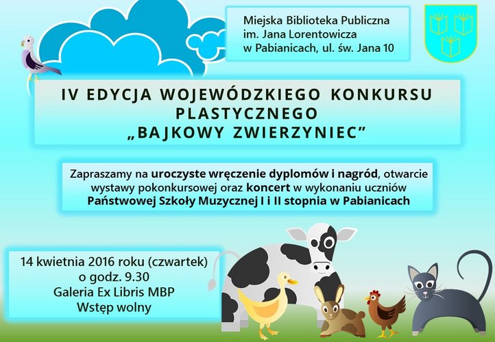 Już niedługo uczniowie podstawowych szkół specjalnych województwa łódzkiego będą mogli wykazać się wyobraźnią za sprawą organizowanego przez Bibliotekę dla Dzieci i Młodzieży w Pabianicach konkursu plastycznego zatytułowanego „Bajkowy zwierzyniec”. Zadaniem uczestników będzie zilustrowanie bohatera na podstawie wybranego wiersza. 14 kwietnia odbędzie się uroczyste wręczenie nagród oraz otwarcie wystawy pokonkursowej.