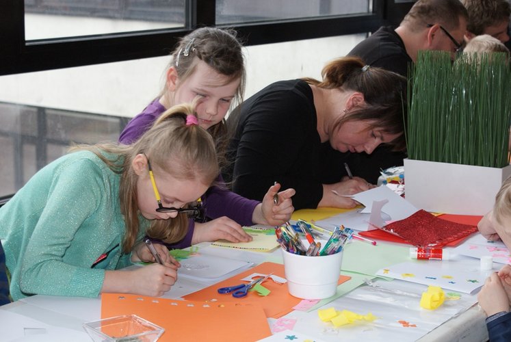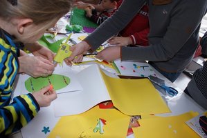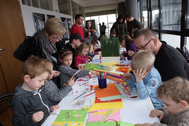 Po projekcjach bajek:"Kozucha kłamczucha", "Czarne licho", "Szewc kopytko i Kaczor Kwak", "Złota jabłoń" dzieci wzięły udział w kolorowych warsztatach plastycznych. Powstały urocze kartki wielkanocne, a niektórzy wrócili do domu z własnoręcznie wysianą rzeżuchą