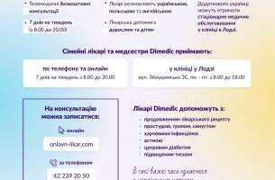 Przychodnia online Dimedic uruchomiła specjalny serwis www.onlayn-likar.com, w którym oferuje bezpłatne konsultacje lekarskie przez telefon dla osób w kryzysie uchodźczym, uciekającym z Ukrainy.