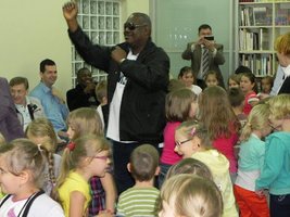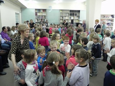 CALA POLSKA CZYTA DZIECIOM W ramach Tygodnia Bibliotek 14.05.2013 r. w Miejskiej i Gminnej Bibliotece Publicznej odbyło się kolejne spotkanie pod hasłem "Cała Polska czyta dzieciom". W baśniowy świat wprowadzili dzieci prezes Radia Ziemi Wieluńskiej, Gabriel Wyględacz i wiceburmistrz Wielunia, Janusz Pamuła. Miłym akcentem spotkania była wizyta przedstawicieli Komitetu Wykonawczego Międzynarodowego Stowarzyszenia Miast Orędowników Pokoju, którzy przyłączyli się do wspólnej zabawy z dziećmi. W tym niecodziennym, radosnym spotkaniu uczestniczyły dzieci z Przedszkola nr 1 i Przedszkola nr 2 oraz uczniowie klasy I ze Szkoły Podstawowej nr 5