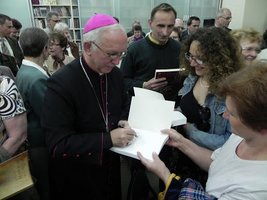 SPOTKANIE z abp WACŁAWEM DEPO 14 maja w Miejskiej i Gminnej Bibliotece Publicznej w Wieluniu odbyło się w ramach Dni Wiary na Ziemi Wieluńskiej spotkanie z abp Wacławem Depo. Metropolita częstochowski w czasie wizyty w wieluńskiej książnicy, prezentował swą książkę „Blask wiary w Chrystusie”. W wydarzeniu, oprócz czytelników Biblioteki uczestniczyli m.in. burmistrz Wielunia Janusz Antczak, starosta wieluński Andrzej Stępień, ks. prałat Marian Mermer oraz ks. Jacek Michalewski. Spotkanie poprowadził ks. Piotr Zaborski, dyrektor Katolickiego Radia Fiat, duszpasterz diecezjalny środowisk twórczych. Podczas spotkania abp Wacław Depo opowiadał o swojej drodze do kapłaństwa, o spotkaniach z Janem Pawłem II i Josefem Ratzingerem. Mówił także o potrzebie wspólnoty między ludźmi i potrzebie poświęcania się dla bliźniego. Wtorkowe wydarzenie w Bibliotece, było dla wszystkich jego uczestników niezwykłą ucztą duchową i intelektualną. Po spotkaniu, zgromadzeni w książnicy mogli osobiście porozmawiać z abp Wacławem Depo a publikacja „Blask wiary w Chrystusie” bardzo szybko znalazła nabywców.