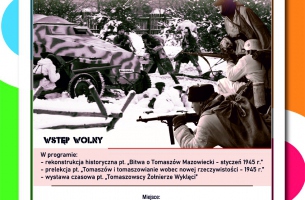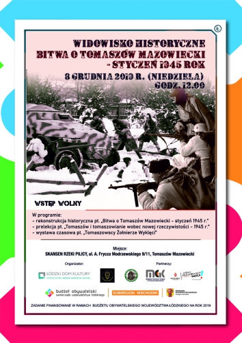 Już 8 grudnia 2019 r. o godz. 12.00 na terenie Skansenu Rzeki Pilicy w Tomaszowie Mazowieckim rozegra się bitwa o miasto. Grupy rekonstrukcyjne z województwa łódzkiego i Śląska odtworzą atmosferę walki, jaka toczyła się w tym rejonie pod koniec II wojny światowej, kiedy Tomaszów został wyzwolony z niemieckiej okupacji.