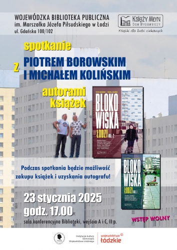 Wojewódzka Biblioteka Publiczna im. Marszałka Józefa Piłsudskiego w Łodzi i Księży Młyn Dom Wydawniczy zapraszają na spotkanie z Piotrem Borowskim i Michałem Kolińskim, autorami książek „Blokowiska Łodzi - vol. 1” i „Blokowiska Łodzi - vol. 2”.