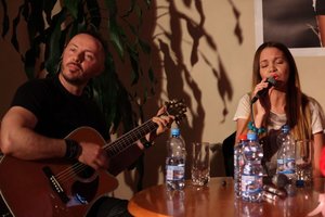 „Podwieczorek z…” to bardzo lubiany cykl spotkań, którego organizatorem jest Miejska Biblioteka Publiczna w Koluszkach. Tym razem (14 czerwca) bohaterami spotkania byli: Dominika Gawęda i Paweł Rurak-Sokal z Blue Cafe wraz z Kamilą Sowińską menadżerem zespołu.