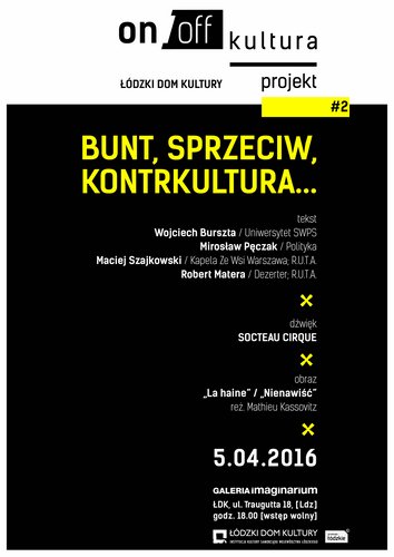 5 kwietnia w Galerii Imaginarium Łódzkiego Domu Kultury odbędzie się druga odsłona projektu on/off kultura, który nie podąża za kultrowymi modami. Stawia na kulturową alternatywę, artystyczny i ideowy nonkonformizm.