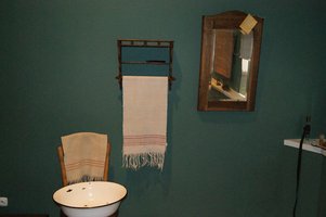Wystawa „Wyposażenie domu wiejskiego na ziemi radomszczańskiej na przełomie XIX i XX w” składa się z kilku modułów: kuchnia, higiena, odpoczynek, święty kąt oraz dzieci. Dział kuchni prezentuje wiele aspektów życia domowego. Jednym z nich jest kuchnia jako miejsce przygotowywania posiłków. W tzw. izbie czarnej stał piec. Ponadto była ona wyposażona w „statki kuchenne”, czyli sprzęty używane do gotowania i spożywania posiłków. Moduł higiena stanowi opis miejsca wydzielonego w izbie, które służyło do codziennej toalety domowników. To także charakterystyka przedmiotów z nią związanych. W latach międzywojennych do mycia powszechnie używano miednic blaszanych. W wielu domach znajdował się kąt do mycia, w którym stał stojak z miednicą, wiadro z wodą, wieszak na ręczniki, makatka na ścianie, czasami półeczka na przybory toaletowe.