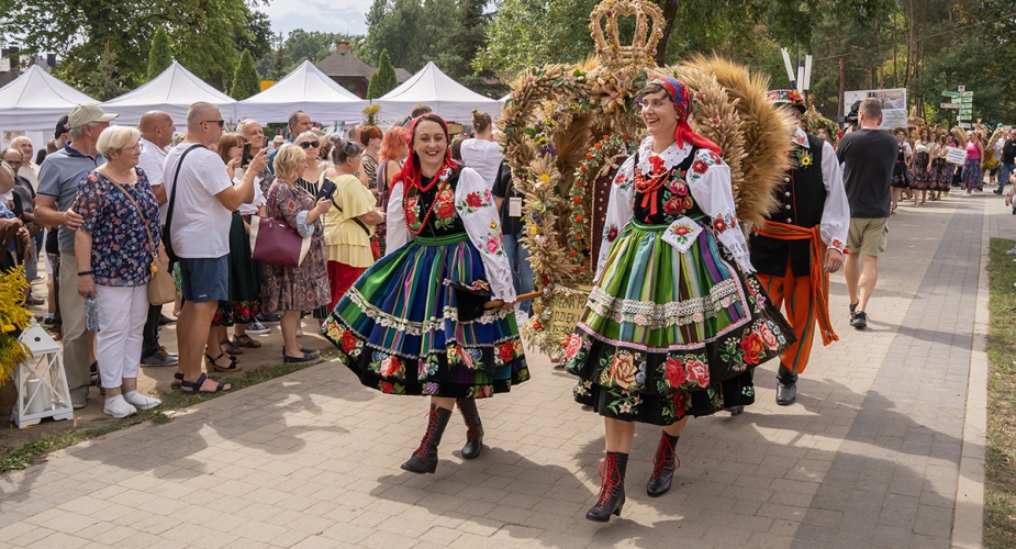 12:45 obrzędy dożynkowe i rozstrzygnięcie konkursów na "Najpiękniejszy wieniec dożynkowy" oraz kulinarnego "Doprawione Łódzkim smakiem"