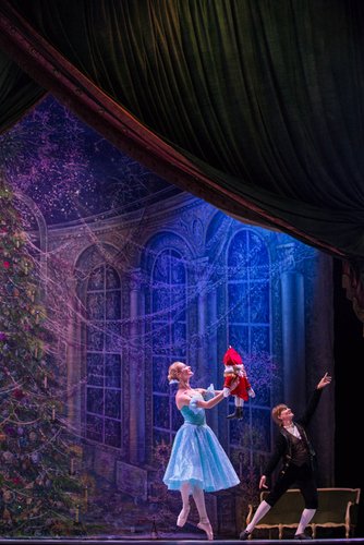 Zimowy wieczór przed Bożym Narodzeniem budzi marzenia o cudownej choince. W oczekiwaniu na święta Marysia wyobraża sobie choinkę podobną do tej, którą widziała przez okno wspaniałego domu. Ze stanu oczarowania wyprowadza dziewczynkę mistrz lalek Drosselmeier, który zaprasza ją do swego warsztatu. Marysia jest zachwycona ogromną ilością niezwykłych lalek. I wszystkie są jak żywe!!!!!!!! Wśród barwnych lalek w drogich szatach Marysia znajduje niezgrabną zabawkę - dziadka do orzechów. Drosselmeier celowo przyprowadził tu Marysię, aby opowiedzieć jej smutną historię.