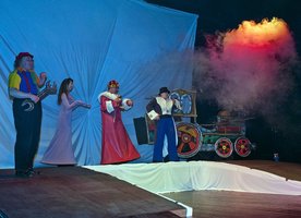 Atutem przedstawienia była kolorowa, bogata, plastyczna scenografia wzbogacona wspaniałą grą świateł i dźwięków, a także piosenki z moralnym wydźwiękiem. Przed spektaklem, kolorowe postacie z bajek witały dzieci słodkimi upominkami.