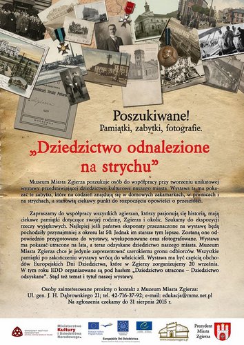 Wystawa ma być częścią obchodów Europejskich Dni Dziedzictwa, które w Zgierzu zorganizowane zostaną 20 września. W tym roku EDD organizowane są pod hasłem „Dziedzictwo utracone – Dziedzictwo odzyskane”. Stąd też temat i tytuł naszej wystawy.