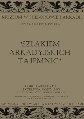 Z okazji Dnia Dziecka Muzeum w Nieborowie i Arkadii 1 czerwca od godz. 13.00 zaprasza dzieci wraz z opiekunami do Ogrodu arkadyjskiego, na zajęcia edukacyjne „Szlakiem Arkadyjskich tajemnic”.
