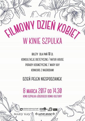 Spędź Dzień Kobiet w Kinie Szpulka Łódzkiego Domu Kultury. Dla każdej z Pań bilet na seans w cenie 10 zł! W tym dniu na dużym ekranie zobaczymy: Milczenie, Manchester by the sea, i Ostatnie tango. W programie: konsultacje dietetyczne (Natur House), porady kosmetyczne (Mary Kay) i konkurs z nagrodami!