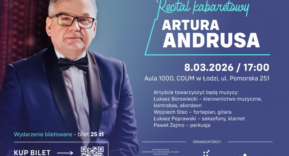 Centrum Dydaktyczne UM w Łodzi zaprasza na Dzień Kobiet z recitalem Artura Andrusa, który odbędzie się 8 Marca o godzinie 17 w auli 1000 w CDUM w Łodzi (Pomorska 251).