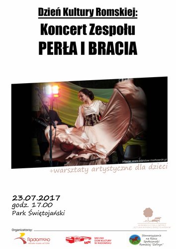 Z okazji Dnia Kultury Romskiej Miasto Radomsko i Miejski Dom Kultury w Radomsku zapraszają 23 lipca 2017, godz. 17.00 na koncert zespołu "Perła i Bracia" oraz warsztaty artystyczne dla dzieci.