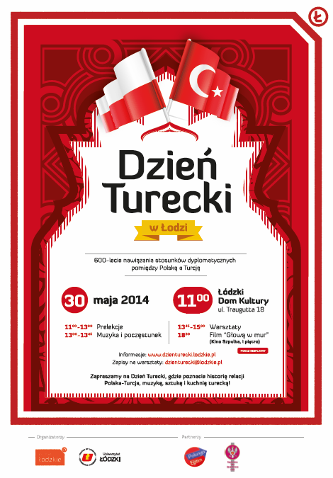 Z okazji 600-lecia nawiązania stosunków dyplomatycznych między Polską i Turcją Urząd Marszałkowski Województwa Łódzkiego i Uniwersytet Łódzki zapraszają do udziału w „Dniu Tureckim w Łodzi”, który odbędzie się 30 maja w Łodzkim Domu Kultury. W programie: prelekcje, koncert muzyki klasycznej, warsztaty, poczęstunek tradycyjnych tureckich potraw i projekcja filmu "Głową w mur".