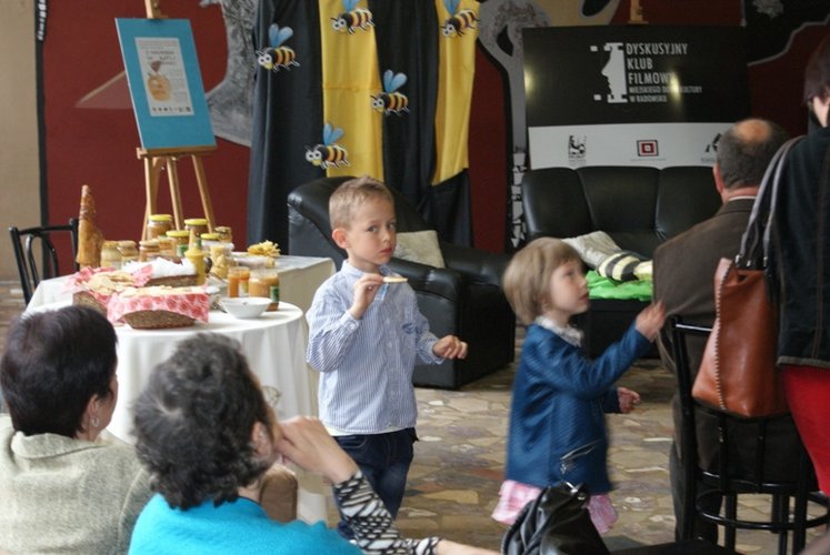 W ramach Małego DKF-u zaprezentowano dwa filmy dla dzieci z serii Miś Kudłatek: Podwórko i Kolorowe Psoty w reżyserii Władysława Nehrebeckiego, pochodzące ze Studia Filmów Rysunkowych z Bielska – Białej. Projekcje odbyły się o 10.30 w ramach Niedzielnego Poranka Filmowego oraz po południu o godz, 16.00 poprzedzone prelekcją nt. miodu i pszczół. Następnie odbyło się spotkanie z Czesławem Korpysą, prezesem Regionalnego Związku Pszczelarzy Ziemi Piotrkowskiej, który podzielił się ze zgromadzoną publicznością swoją pasją i miłością do pszczół. Opowiadał o różnych rodzajach miodu i pszczelich produktów oraz o ich leczniczym działaniu. Po spotkaniu w ramach Dyskusyjnego Klubu Filmowego odbyła się projekcja filmu dokumentalnego Więcej niż miód w reżyserii Markusa Imhoofa, opowiadający o tym, że pszczoły to nie tylko istotne ogniwo ziemskiego, lecz również ważny czynnik plonotwórczy. Całemu spotkaniu towarzyszyły degustacje przygotowane przez Pana Stanisława Ślęzakiewicza z Pasieki na 11-go Listopada oraz przez Pana Dariusza Zatonia z Pasieki w Zakrzówku Szlacheckim.