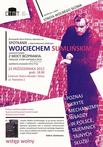 Strefa Wolnego Słowa w Kutnie i Centrum Teatru, Muzyki i Tańca zaprasza na spotkanie z dziennikarzem śledczym Wojciechem Sumlińskim, autorem książki „Z mocy bezprawia. Thriller, który napisało życie”. Spotkanie odbędzie się 23 października o godz. 18.00 w CTMT (ul. Teatralna 1). Wstęp wolny!