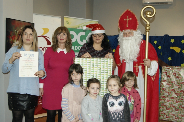 Nagrody w postaci zabawek laureatom konkursu wręczył św. Mikołaj wraz z wiceprezes PGK Izabelą Michnowską oraz naczelnik Wydziału Ochrony Środowiska, Rolnictwa i Gospodarki Odpadami Marzanną Proszowską.