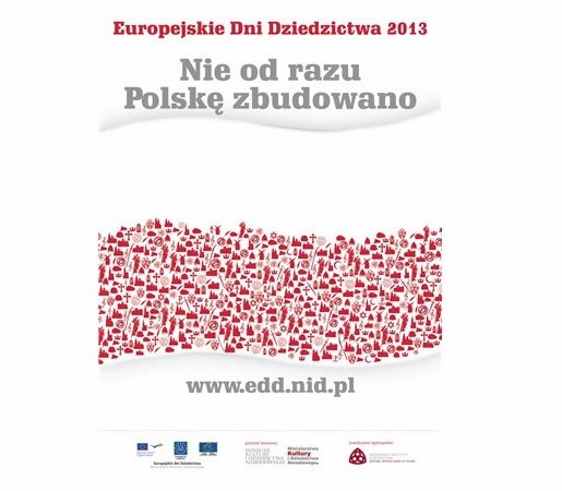 Narodowy Instytut Dziedzictwa zaprasza na tegoroczne Europejskie Dni Dziedzictwa w Polsce. Hasło kolejnej - 21. już edycji wydarzenia - brzmi "Nie od razu Polskę zbudowano". EDD 2013 odbędą się tradycyjnie w drugi i trzeci weekend września: 7-8 i 14-15.09.2013. Decyzją Ministra Kultury i Dziedzictwa Narodowego uroczysta inauguracja będzie miała miejsce w Opactwie Cysterskim w Wąchocku 7 września.