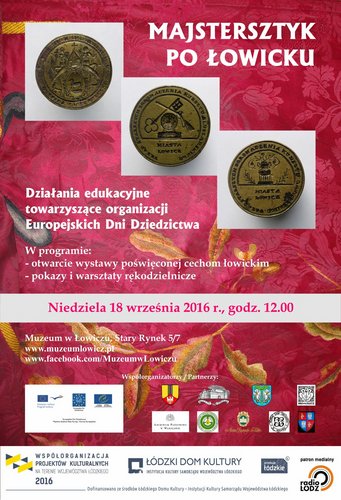 Muzeum w Łowiczu w ramach tegorocznej edycji Europejskich Dni Dziedzictwa 18 września zaprasza na wydarzenie „Majstersztyk po łowicku”. W programie: wystawa prezentująca dzieje rzemiosła łowickiego od czasów średniowiecza po współczesność, warsztaty i pokazy rzemiosła historycznego, warsztaty z projektowania i szycia odzieży. Zapisy na warsztaty grupowe trwają! Wstęp wolny!