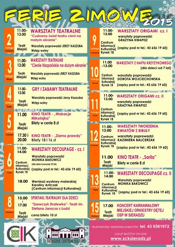 Sieradzkie Centrum Kultury zaprasza dzieci i młodzież na ferie 2015!