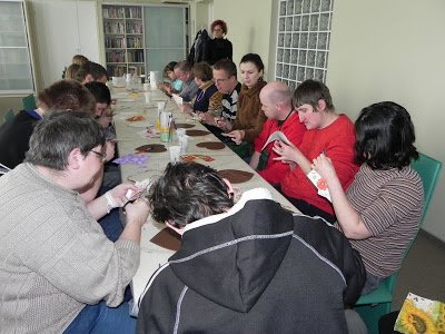Filia dla Dzieci Już po raz kolejny nasza koleżanka z wypożyczalni dla dzieci, Pani Anita Kuś, prowadziła dla czytelników warsztaty plastyczno-techniczne. Cieszymy się, iż w środę 13 lutego nie tylko nasi najmłodsi czytelnicy wzięli udział w zajęciach, lecz także uczestnicy Środowiskowego Domu Samopomocy w Wieluniu wygospodarowali wolny czas, by do nas dołączyć. Warsztaty były okazją do zapoznania się z tajnikami techniki decoupage, co stanowiło świetną zabawę we własnoręczne zdobienie przedmiotów. Po wspólnej, półtoragodzinnej pracy, uczestnicy zajęć z dumą i radością oglądali swoje dzieła, a każdy ozdobiony przez nich przedmiot okazał się niepowtarzalny. To co dobre, szybko się kończy, dlatego też koleżanki z Filii dla Dzieci, aby umilić ostatnie dni ferii naszym najmłodszym czytelnikom, przeprowadziły kolejne warsztaty plastyczne oraz zabawę w przemieszczanie. Pani Anita Kuś podczas zajęć plastycznych połączyła papieroplastykę w formie płaskiej z malowaniem. Kawałki papieru, kolorowe wycinki z gazet, farby, kleje i kredki pozwoliły dzieciom stworzyć "z niczego coś ładnego". W ciągu godziny mali czytelnicy własnoręcznie wyczarowali piękne prace. Miłym akcentem spotkania było zaproszenie do wędrówki po Bibliotece. Pani Barbara Stępień zabrała dzieci w niedostępne na co dzień zakątki. Przyjemną niespodzianką było ogromne, kolorowe pudło wypełnione słodyczami i drobnymi upominkami. Uczestnicy kolejnego spotkania w Bibliotece dowiedzieli się jakie jest znaczenie ilustracji w książkach dla dzieci i młodzieży? Jak ważny jest kolor? Co sprawia, że ilustrator tworząc je, osiąga zamierzony cel? Na te i inne pytania wspólnie z bibliotekarką Barbarą Stępień próbowały odpowiedzieć dzieci z Klubu Osiedla Kopernika i Spółdzielczego Domu Kultury na zajęciach w czasie ferii w Bibliotece. Uczestnicy zajęć dowolną techniką plastyczną stworzyli własny komiks do przeczytanego fragmentu książki. Pomysły były oryginalne... Zajęcia zakończyły się niespodzianką. Dzieci szukały ukrytej skrzyni skarbów. Zabawa była znakomita a skarb był ukryty w gabinecie Pani Dyrektor. Filia w Masłowicach W ramach projektu edukacyjnego Instytutu Pamięci Narodowej pt: "Znaki dwa - klasa gra" biblioteka otrzymała grę edukacyjną "ZnajZnak". Gra cieszyła się zainteresowaniem młodzieży ze szkół średnich. Gracze uczyli się rozpoznawać symboliczne dla XX wieku znaki, daty, postacie, miejsca, przedmioty. W grze, oprócz wiedzy historycznej niezbędny był także refleks i spostrzegawczość – a to gwarantowało oprócz nauki emocje i zabawę. Dla dzieci w zorganizowano "zgaduj- zgadule" na podstawie najpopularniejszych bajek. Dzieci odpowiadały pisemnie na pytania dotyczące znanych dziecięcych lektur. Dla najmłodszych czytelników odbyło się głośne czytanie bajek. Dzieci po wysłuchaniu kolorowały wybrane postacie z bajek oraz malowały ilustracje do wysłuchanego tekstu. Kontynuowano bezpłatne kursy języka angielskiego przez Internet – dla dzieci "FunEnglish w bibliotece" oraz dla młodzieży "Angielski 123 w bibliotece". Filia w Rudzie W pierwszym dniu na zajęciach "Kwieciste opakowania" dzieci ozdabiały kolorowym papierem plastikowe pudełka po płytach CD i DVD. Tematem drugiego spotkania było "Moje akwarium". Uczestnicy zajęć wykonali akwaria z dużych przezroczystych plastikowych pojemników. Każde dziecko tworzyło samodzielnie swoje wymyślone, barwne akwarium,w którym umieściły zrobione z papieru kolorowe muszelki, kamyki, roślinki oraz rybki. Podczas kolejnego spotkania w bibliotece dzieci z plastikowych butelek stworzyły "kręgle- potworki", które później posłużyły im do gry w kręgle. Na kolejnym spotkaniu uczestnicy z papieru i kolorowych resztek włóczki wykonali "zabawki pomponikowe" i zakładki "duszki" do książek. Dużą popularnością wśród dzieci cieszą się zajęcia warsztatowe prowadzone techniką decoupage. Jedno ze spotkań w bibliotece poświęcone było ozdabianiu plastikowych pojemników techniką serwetkową. Dzieci biorące w nich udział przekonały się, że nie muszą być uzdolnione plastycznie aby spełniać się twórczo i otaczać się pięknymi przedmiotami wykonanymi własnoręcznie. Na zakończenie ferii w bibliotece odbyły się różnego rodzaju gry i zabawy ruchowe, m.in.: taniec z piłeczką plastikową na łyżce, rzut plastikowym kółkiem do celu. Uczestnicy spotkania brali aktywny udział w prowadzonych zabawach. Dzieci w trakcie prowadzonych w bibliotekach zajęć rozwijały swoje zainteresowania, uczyły się pracy w grupie, kreatywności a przede wszystkim dobrze się bawiły. Powstało wiele ciekawych i kolorowych prac.