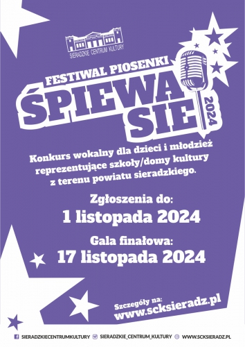 Sieradzkie Centrum Kultury zaprasza do udziału w konkursie wokalnym dla dzieci i młodzieży reprezentujących szkoły/domy kultury z terenu powiatu sieradzkiego. Zgłoszenia do 1 listopada.