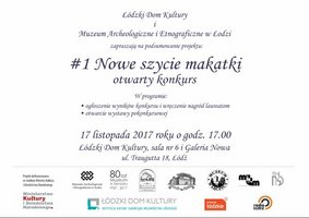Łódzki Dom Kultury i Muzeum Archeologiczne i Etnograficzne w Łodzi 17 listopada o godz. 17.00 zapraszają na podsumowanie projektu #1 Nowe szycie makatki - otwarty konkurs! W programie: ogłoszenie wyników konkursu i wręczenie nagród laureatom, otwarcie wystawy pokonkursowej.