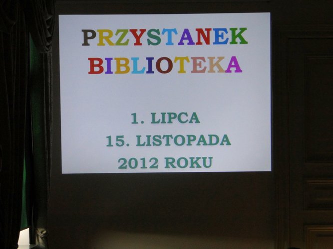 Dnia 15 listopada 2012 r. w Oddziale dla Dzieci i Młodzieży Miejskiej Biblioteki Publicznej w Tomaszowie Mazowieckim przy Pl. Kościuszki 18 odbyło się uroczyste zakończenie Projektu „Przystanek Biblioteka”.