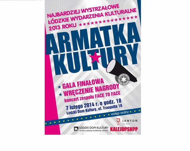 Najbardziej wystrzałowe łódzkie wydarzenie kulturalne 2013 roku ARMATKA KULTURY - Gala finałowa! 7 lutego, godz. 18.00, Sala Kolumnowa ŁDK. Zapraszamy!