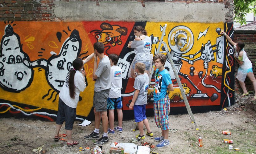 Mural namalowany! II etap warsztatów dla młodzieży „Graffiti – sztuka miasta 4” odbył się 22 czerwca podczas Dni Bełchatowa. Na jednej ze ścian na terenie parku Olszewskich w Bełchatowie, zaistniała sztuka stereet artu. Inspiracją był, zgodnie z założeniem tegorocznej edycji projektu, wiersz Juliana Tuwima pt. Pstryk”. „Sterczy w ścianie taki pstryczek, mały pstryczek elektryczek …. „ i świetnie wpisuje się swym przeznaczeniem w temat elektryczności, energetyki i energii, która naszemu miastu jest przecież tak bliska. Kolorystyka wynikająca z nowej strategii marki naszego miasta ociepliła zakątek parku przy Muzeum Regionalnym. Mural to efekt kilkugodzinnej pracy artystów street artu oraz młodych, zdolnych bełchatowian. Towarzyszyły im warsztaty beatboxu i hip-hopu, które pozwalały na chwilę odpocząć palcom, odetchnąć świeżym powietrzem, a przede wszystkim uciec komarom, które tego dnia także bardzo chciały zaistnieć…