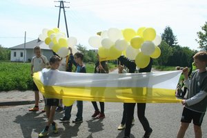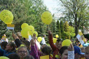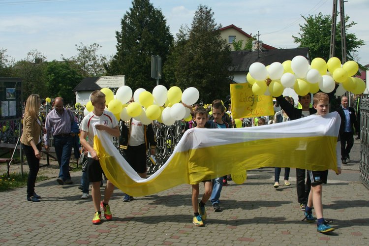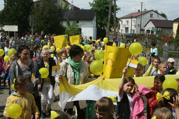 Zwieńczeniem zabawy był barwny happening ulicami miejscowości, m.in. ul. Jana Pawła II, w którym królował kolor żółty – papieski, zakończony na błoniach Sanktuarium Urodzin i Chrztu św. Faustyny Kowalskiej. Tam po rozdaniu nagród uczestnikom gier, a także zwycięzcom ogłoszonego wcześniej konkursu na logo Partnerstwa, wspólnie z gospodarzem miejsca ks. kustoszem Januszem Kowalskim oraz ks. kan. Kryspinem Kaźmierczakiem została odśpiewana „Barka”, ulubiony utwór Świętego Bohatera naszych rozgrywek.