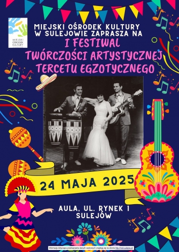 Miejski Ośrodek Kultury w Sulejowie zaprasza na I Festiwal Twórczości Tercetu Egzotycznego. Festiwal skierowany jest do szerokiej publiczności, w tym miłośników muzyki rozrywkowej, rodzin, przedstawicieli instytucji kultury oraz młodzieży zainteresowanej historią polskiej sceny muzycznej. Zgłoszenia do części konkursowej trwają do 15 kwietnia 2025 r.