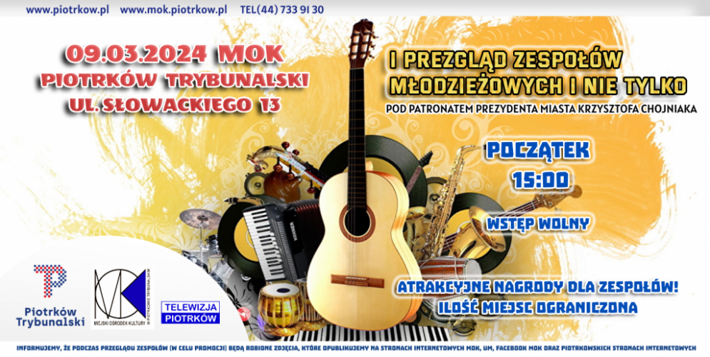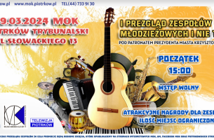 Miejski Ośrodek Kultury w Piotrkowie Trybunalskim zaprasza do udziału w I Przeglądzie Zespołów Młodzieżowych i nie tylko. Udział w Przeglądzie wziąć mogą także soliści amatorzy.