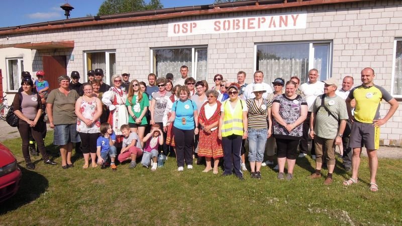Następnie wszyscy uczestnicy, zasiedli na rowerach i udali się na grabiański cmentarz. Tam była sołtys Grabna, pani Krystyna Szymańska, przygotowała informacje na temat historii wsi, Koła Gospodyń Wiejskich i parafii. Po zapaleniu znicza cały peleton ugasił pragnienie i ruszyliśmy przez Górki Grabiańskie i Podule do Sobiepan. Na granicy obu wsi przywitała nas delegacja strażaków z panią sołtys i radną w jednej osobie – panią Moniką Poradą. Pani radna przygotowała prelekcje o historii wsi, kapliczki, najstarszej chałupy, a także przedstawiła legendę o młynie „Jagielniku” i mogile Kozaka z czasów powstania styczniowego.