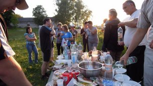 Po spotkaniu rowerzyści, pod przewodniczącego komisji kultury i sportu – pana Jarosława Bartczaka udali się w drogę do Kustrzyc, wysłuchując po drodze jego wykładów na temat historii Kustrzyc, elektrowni wiatrowych oraz budowy wiaduktu kolejowego. Po ich zakończeniu, uczestnicy dużej grupy, w doskonałych humorach, zadowoleni udali się w kierunku zabudowań pana jarka, aby przygotować ognisko i poczęstunek, czyli pyszne kiełbaski, zakupione z pieniążków „wpisowych”. Mała, 6-osobowa grupa, wierna zapisom Programu rajdu wyruszyła, aby pokonać ostatni już etap trasy: Marzenin – Wola Marzeńska - Pruszków – Lichawa – na powrót Kustrzyce. Niestety, radny Lichawy, który miał pełnić funkcję przewodnika rozchorował się i zawiódł nas. Dlatego też 6-osobowa grupa w szybkim tempie powróciła do Kustrzyc, podziwiając po drodze uroki majowych łąk i rzeki w Lichawie.