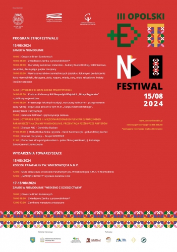 Uroczyste odsłonięcie rzeźb stworzonych w trakcie pleneru nastąpi 15 sierpnia podczas III edycji Opolskiego EtnoFestiwalu od godziny 16.00. W trakcie wydarzenia będzie można zadawać pytania artystom biorącym udział w wydarzeniu. Ponadto na gości czekają liczne atrakcje EtnoFestiwalu takie jak zwiedzanie Zamku z przewodnikiem, warsztaty zamkowe, kiermasz wyrobów rzemieślniczych, konkursy, prezentacje lokalnych tradycji i koncert muzyczny.