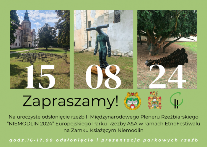 Trwa II Międzynarodowy Plener Rzeźbiarski Europejskiego Parku Rzeźby A&A na Zamku Książęcym Niemodlin 1313. W przestrzeni zamkowej zamontowano już wyłonione w drodze konkursu dzieła. Trwają ostatnie prace przed oficjalnym odsłonięciem 15 sierpnia w trakcie trwania III edycji opolskiego EtnoFestiwalu.