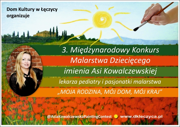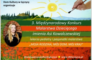 Dom Kultury w Łęczycy zaprasza do wzięcia udziału w III Międzynarodowym Konkursie Malarstwa Dziecięcego im. Asi Kowalczewskiej, lekarza pediatry i pasjonatki malarstwa pod hasłem „Moja rodzina, mój dom, mój kraj”.