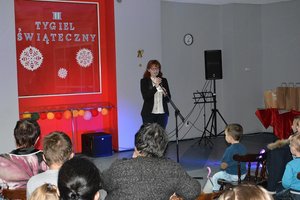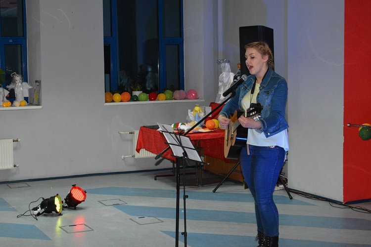 W świąteczny nastrój gości wprowadziła Monika Brzezińska z LO im. Jarosława Iwaszkiewicza, która zaśpiewała kilka tradycyjnych kolęd przy własnym akompaniamencie gitarowym.