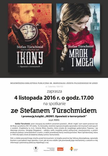 Wojewódzka Biblioteka Publiczna im. Marszałka Józefa Piłsudskiego w Łodzi 4 listopada 2016 r. o godz. 17.00 zaprasza na spotkanie ze Stefanem Türschmidem i promocję książki „Ikony. Opowieść o terrorystach”.