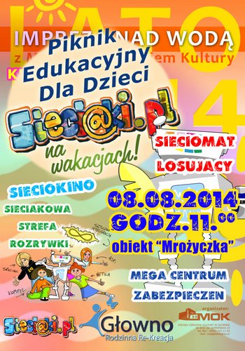 Miejski Ośrodek Kultury w Głownie zaprasza 8 sierpnia na teren rekreacyjny nad głowieńskim zalewem Mrożyczka, gdzie odbędzie się kolejna Impreza Nad Wodą połączona z edukacyjnym piknikiem dla dzieci Sieciaki.pl