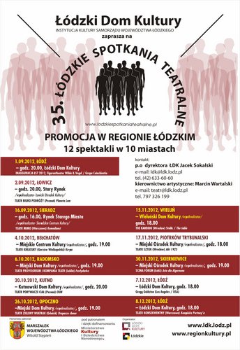 To już 35. edycja Łódzkich Spotkań Teatralnych. Po raz pierwszy odbyły się w 1964 roku i jest to najstarsza, cykliczna impreza kulturalna w Łodzi. Festiwal został dofinansowany ze środków Ministra Kultury i Dziedzictwa Narodowego kwotą 150 tys. złotych. Honorowy patronat nad festiwalem objął w tym roku marszałek województwa łódzkiego Witold Stępień oraz Ministerstwo Kultury i Dziedzictwa Narodowego.