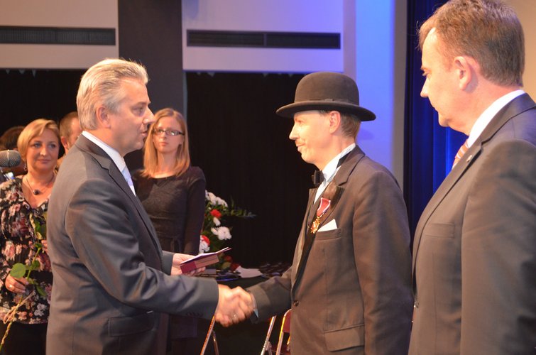 Podczas piątkowej uroczystości nagrodzone zostały osoby wybitne, które działają na rzecz rozwoju kultury, kultywowania tradycji i promowania działań artystycznych. Najwyższym odznaczeniem – Złotym Krzyżem Zasługi , przyznanym przez Prezydenta Rzeczypospolitej Polskiej Bronisława Komorowskiego, został uhonorowany Pan Marcel Romuald Szytenchelm. Srebrny medal „ Gloria Artis” otrzymał dyrektor Muzeum Sztuki w Łodzi – Pan Jarosław Suchan.