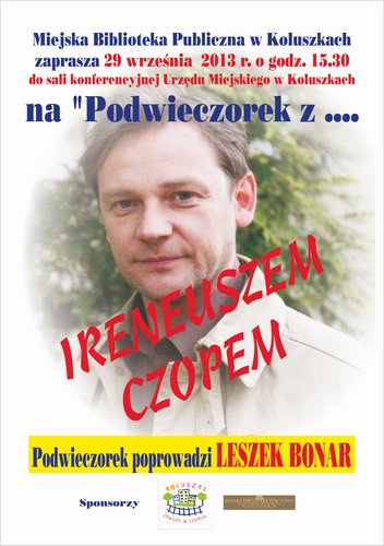 Miejska Biblioteka Publiczna w Koluszkach zaprasza 29 września o godz. 15.30 do sali konferencyjnej Urzędu Miejskiego w Koluszkach na " PODWIECZOREK Z IRENEUSZEM CZOPEM".