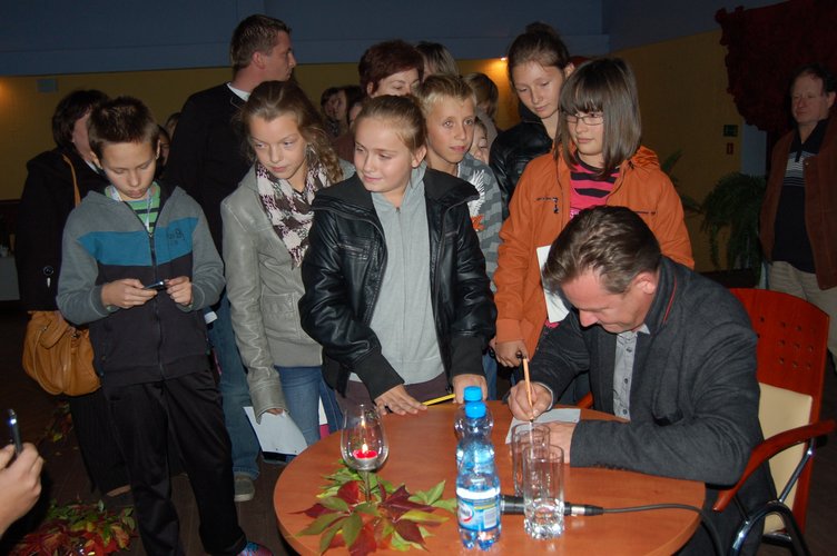 W ramach cyklu "Podwieczorek z..." Miejska Biblioteka Publiczna w Koluszkach gościła znanego i lubianego aktora Ireneusza Czopa. Jest on absolwentem PWSTTViF w Łodzi. Od 2004 r. związany jest z Teatrem Jaracza, wcześniej z Teatrami Nowym i Powszechnym. Sympatię i wielką popularność przyniosła mu rola Ryszarda Puchały w „Komisarzu Alexie”. Grał też w innych serialach: „Szpilki na Giewoncie”, „Prawo Agaty”, „Lekarze”, „Na Wspólnej”. Pełnię jego umiejętności aktorskich zobaczyliśmy w filmie Władysława Pasikowskiego „Pokłosie”, gdzie zagrał Franciszka Kalinę. Ireneusza Czopa widzieliśmy także m. in. w Ciemności”, „Generał - zamach na Gibraltarze, "Być jak Kazimierz Deyna”, „Słodko gorzki”. Aktor odpowiadał na pytania Leszka Bonara - prowadzącego spotkanie, a w końcowej części także publiczności. Przygotowana niespodzianka całkowicie zaskoczyła bohatera podwieczorku. Z aktorem "przyszły przywitać się" dwa owczarki niemieckie, będące pod opieką funkcjonariuszy Powiatowej Komendy Policji w Koluszkach. Na zakończenie spotkania aktor rozdawał autografy i chętnie pozował do zdjęć z koluszkowianami. Ireneusz Czop to człowiek odnoszący się do innych z wielką życzliwością, z optymizmem patrzący w przyszłość, z naszym Gościem z wielką przyjemnością dyskutuje się na każdy temat.